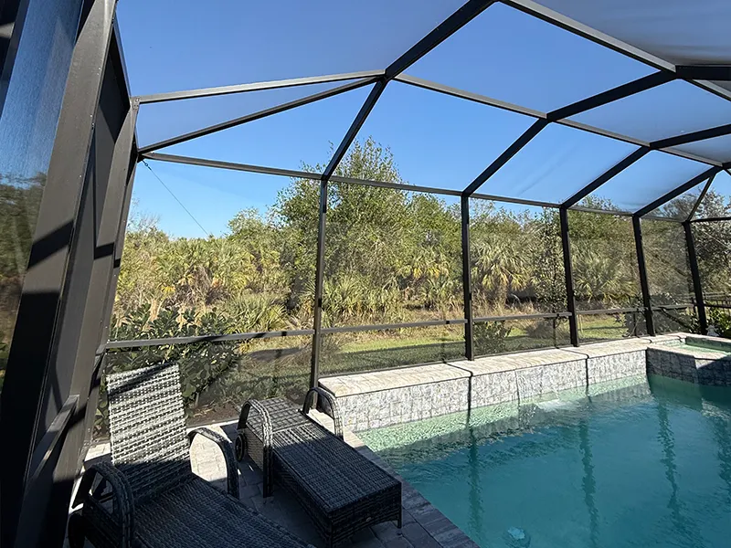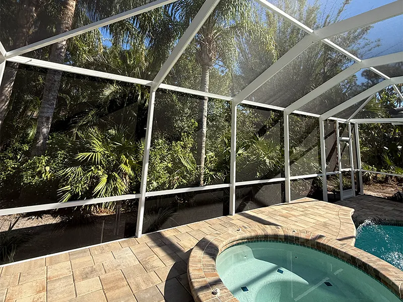 Breathe new life into your enclosure with our professional re-screening services. We replace damaged or worn mesh with durable materials, including premium upgrades like 20/20 Super Screen®, for long-lasting strength and superior insect protection.