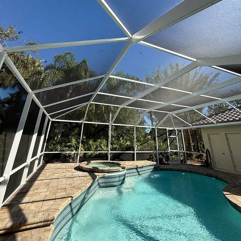 Breathe new life into your enclosure with our professional re-screening services. We replace damaged or worn mesh with durable materials, including premium upgrades like 20/20 Super Screen®, for long-lasting strength and superior insect protection.