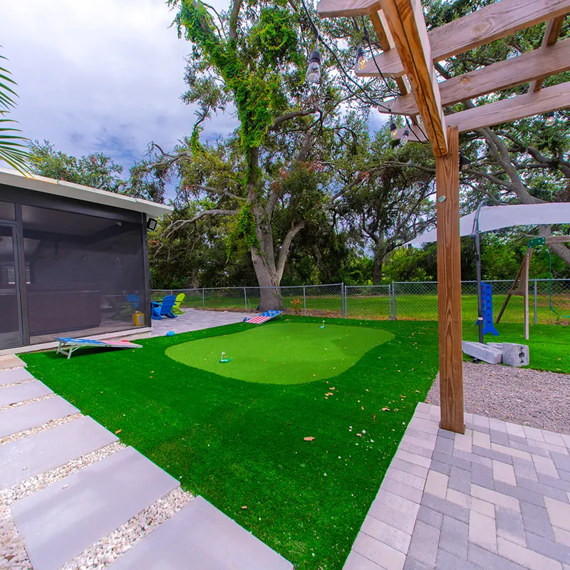 Lush, low-maintenance synthetic turf. Our professional turf installations give you the look and feel of natural grass without the hassle of mowing, watering, or constant upkeep.